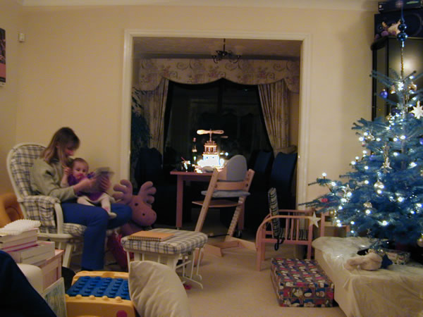 Seasons Greetings to our friends and family around the world. It has been quite a challenging year, which makes us look forward to next year more so than usual. Best wishes of joy to all of you over the holidays and in the New Year! We're celebrating Christmas 2001 in Milton Keynes. Click on the small pictures to see larger versions. Wait a few minutes for the larger pictures. How long will you need to wait? Go make a cup of coffee, drink it, and come back.